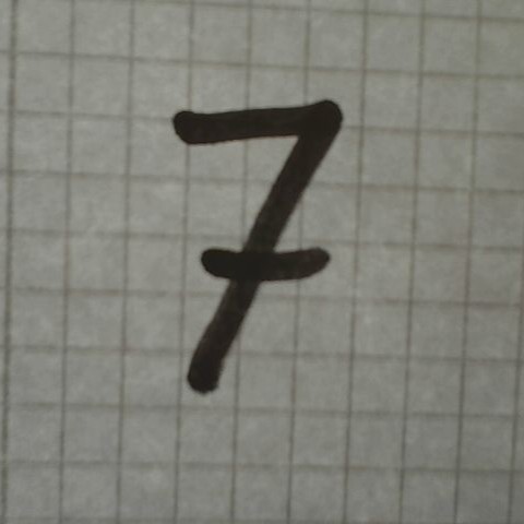 An example of how the images might look during deployment. The background isn't perfectly white and the number isn't perfectly black. Furthermore, this example uses squared paper, which adds a texture to the background.