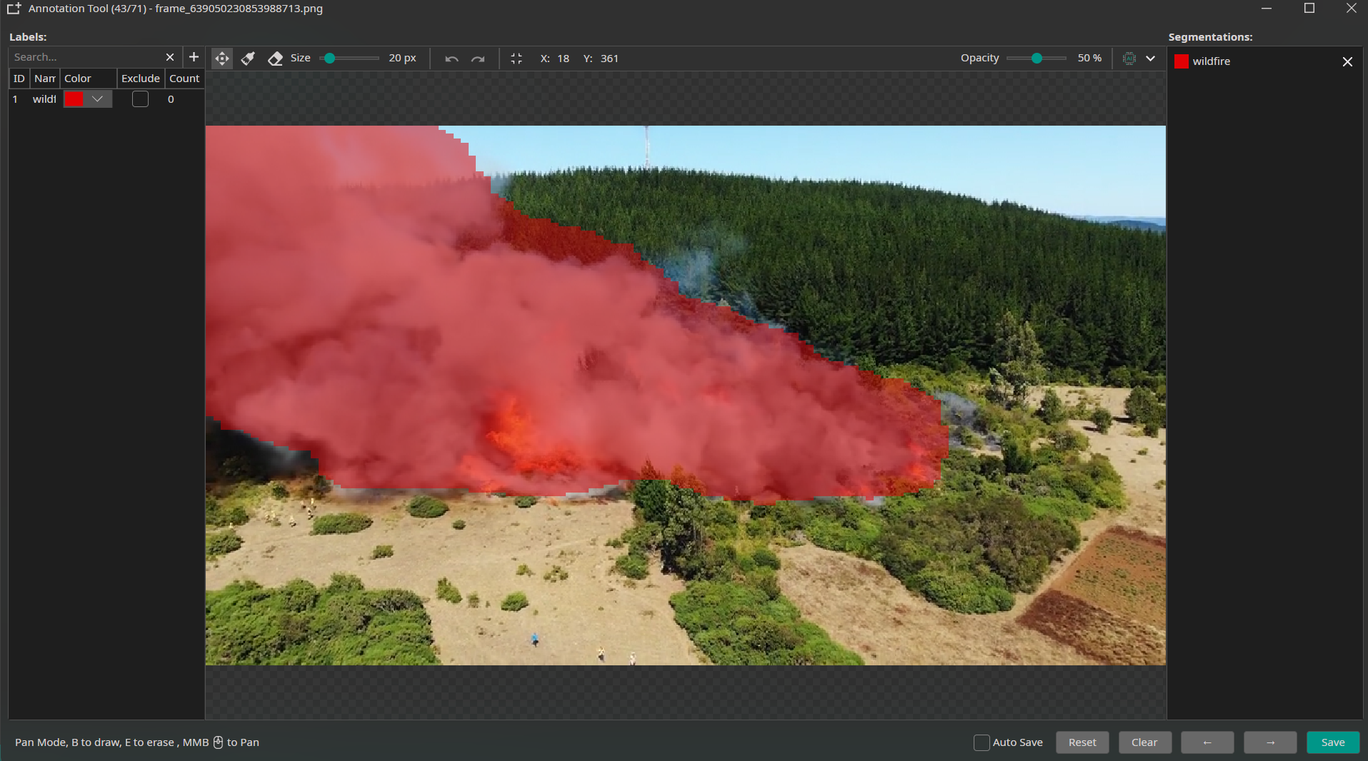 The Wildfire project comes with pre-labeled masks. However, understanding the annotation workflow is essential for creating your own segmentation datasets.