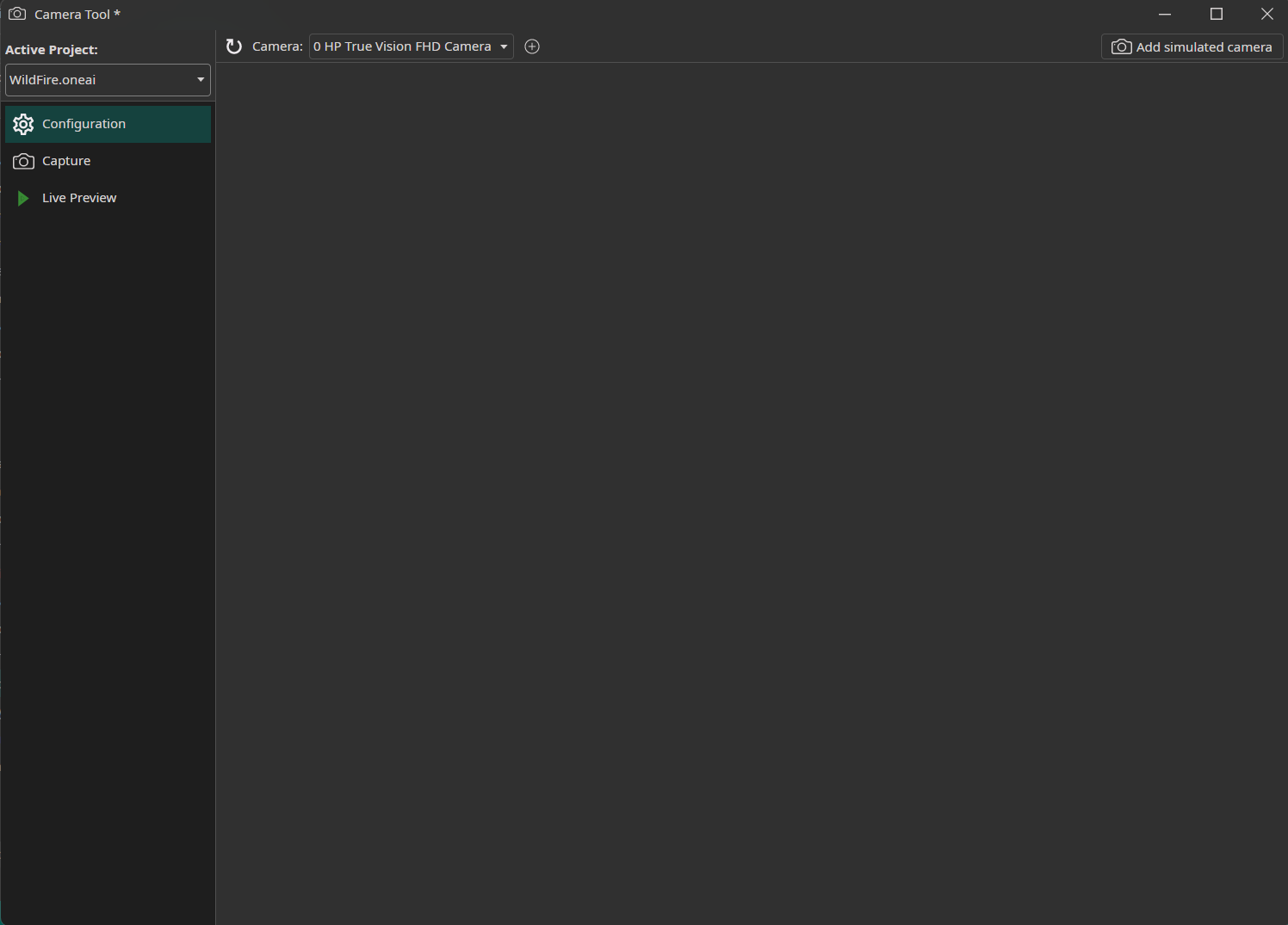 3. Set the simulated camera (or your connected camera) as the Camera