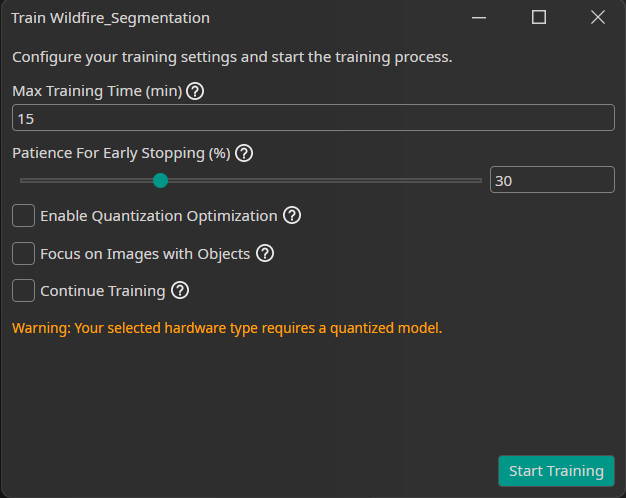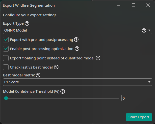 5. Enter a model name (e.g., "Wildfire_Segmentation")